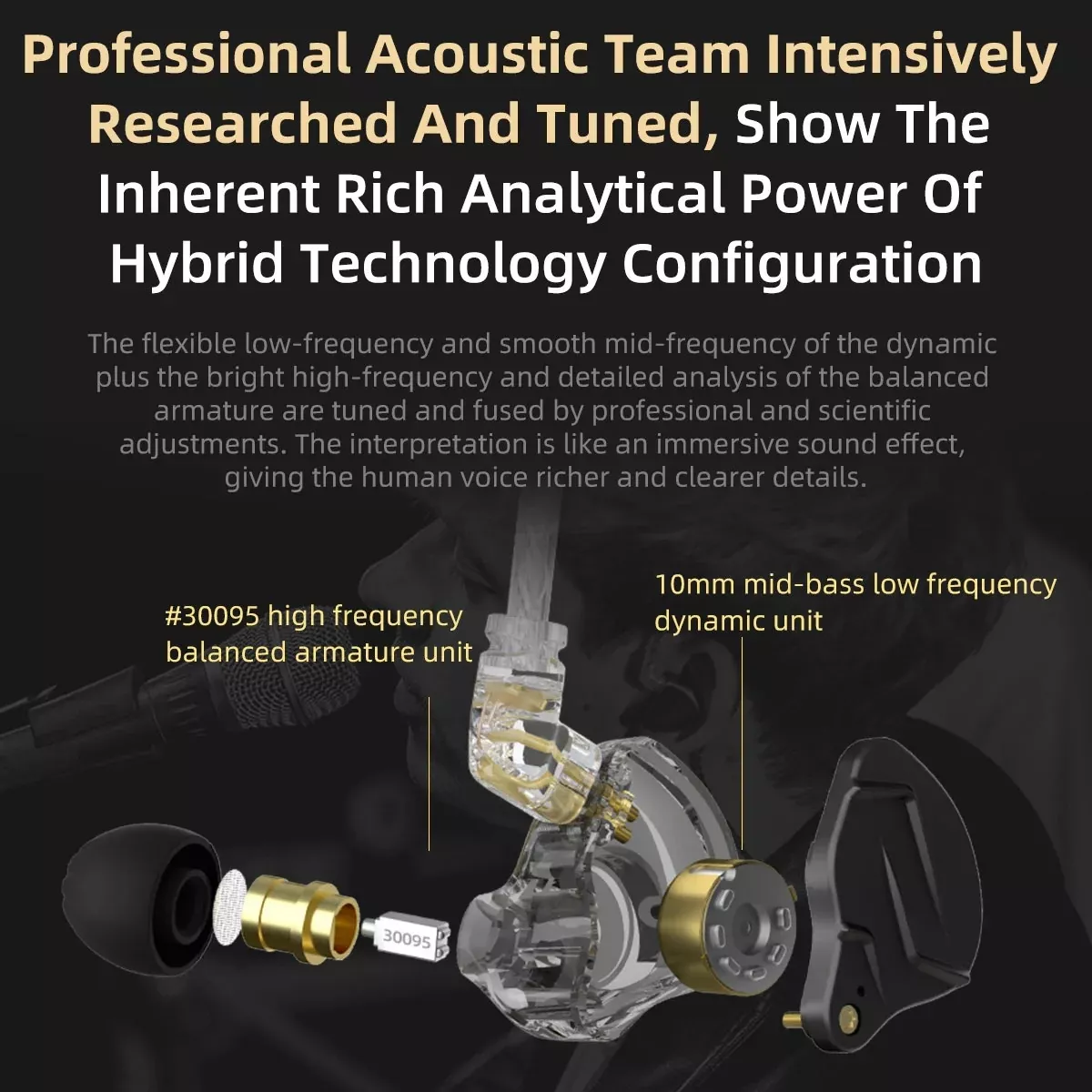 KZ ZSN PRO X MIC – гібридні навушники з новим динамічним драйвером 10-мм та арматурним випромінювачем 30095. Модель відрізняється гарною якістю звуку та підійде для любителів будь-яких стилів музики. Технічні характеристики забезпечують достатній запас гучності навіть за умови використання зі слабким підсилювачем смартфона. Навушники відмінно ізолюють від зовнішнього шуму за рахунок ергономічного корпусу та закритої конструкції.