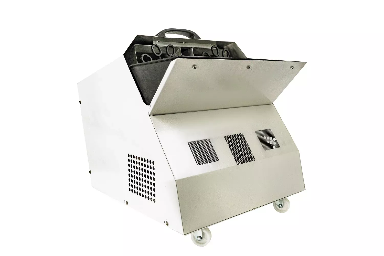 Середня машина мильних бульбашок потужністю 300 Вт - Free Color SM021. Особливості: має бездротове управління, висоту випуску 10 м. Обсяг заповнення бульбашками 600 куб.м. Ємність 2.5 л, пульт ДУ.