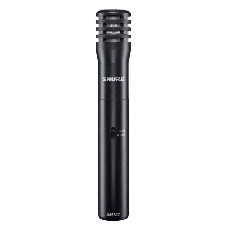 SHURE SM137-LC - кардіоїдний інструментальний конденсаторний мікрофон, що забезпечує відтворення звучання акустичних інструментів при великій гучності виконання. Особливості включають тонку діафрагму, підсилювач класу А, подушечку для стабільної продуктивності і низький рівень власних шумів.