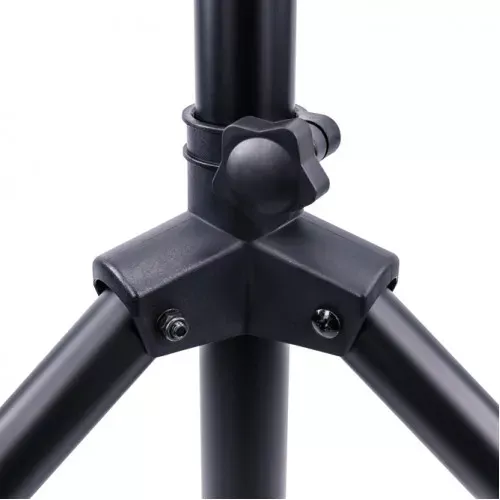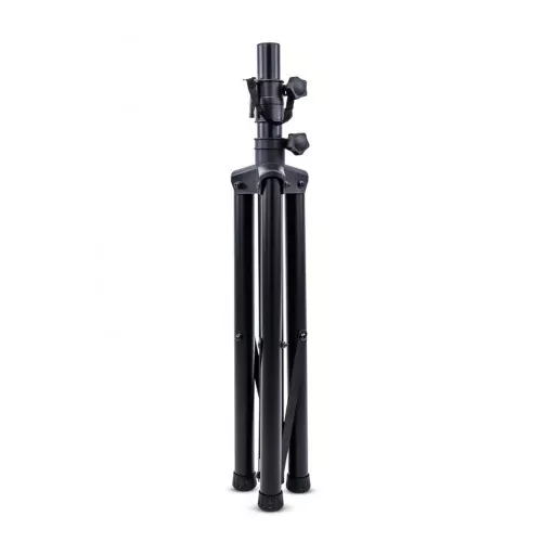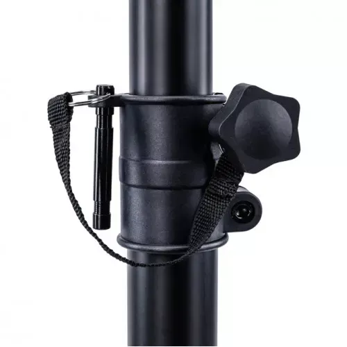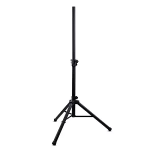 Якісна міцна стійка для акустичної системи, пряма. Вантажопідйомність 90 кг. Ідеально підходить для топів і невеликих широкосмугових акустичних систем. Можливість регулювання по висоті 1,25 - 2 м. 6 ступенів регулювання завдяки наявності шести отворів і надійно фіксованого штифта. Ноги оснащені гумовими насадками, що забезпечують надійність встановлення стійки і захист поверхні від подряпин. Матеріал: метал і пластик. Колір: чорний.