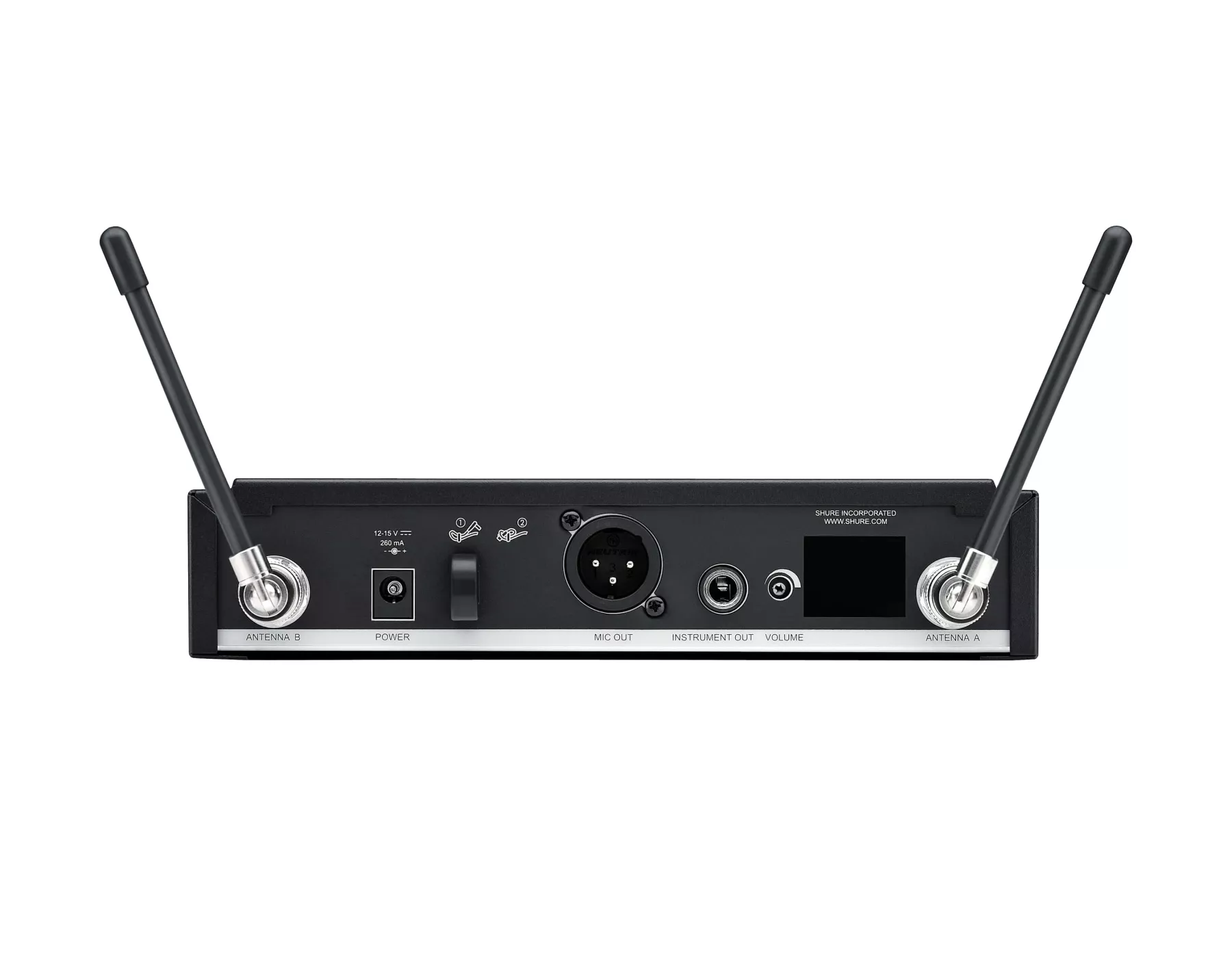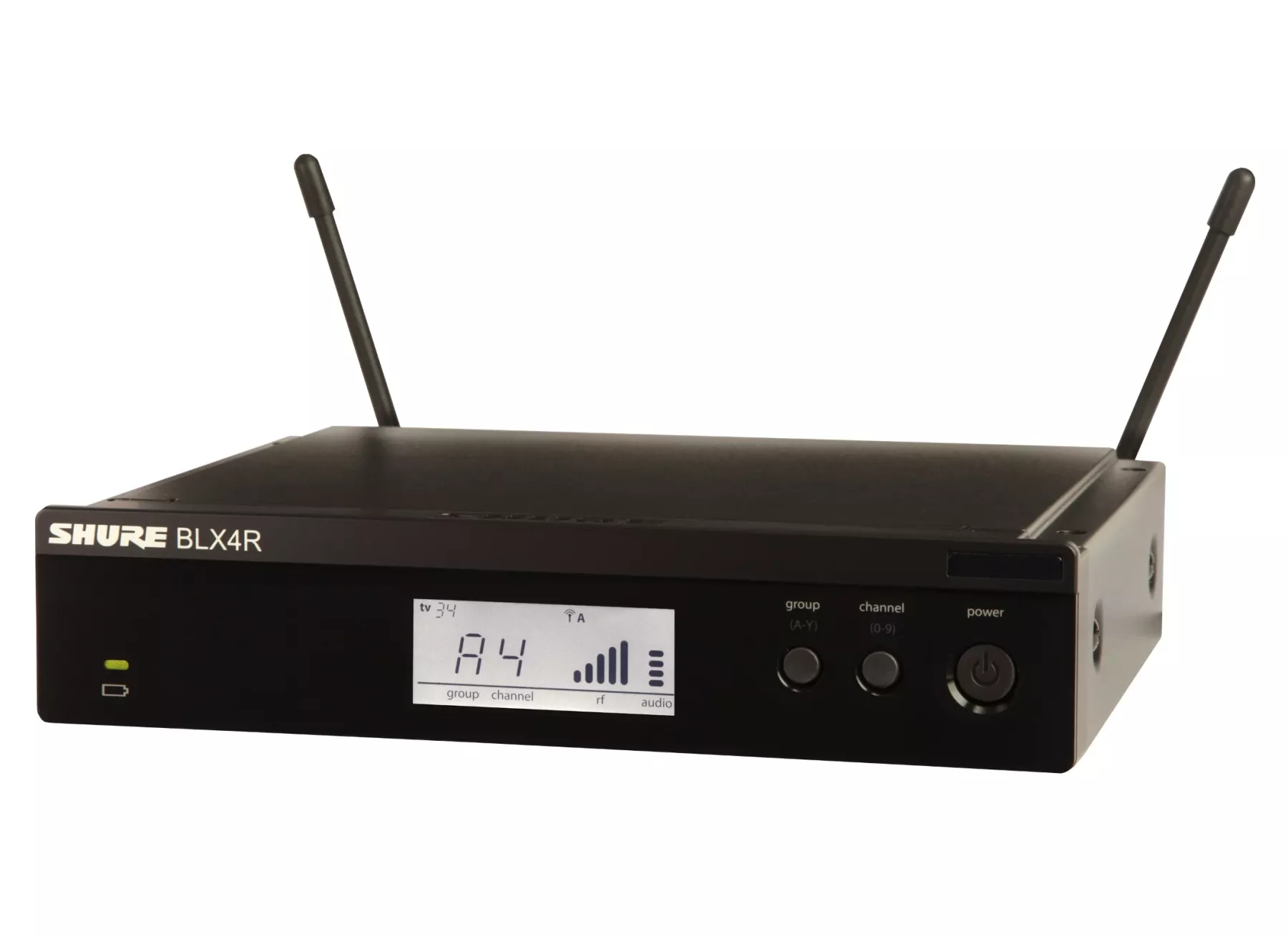 Shure BLX4RE – это одноканальный беспроводной приемник, совместимый с нательными передатчиками BLX1 и ручными передатчиками BLX2. Имеет прочный металлический корпус и может быть установлен в рэковую стойку. Оснащен двумя съемными антеннами, расположенными на передней панели для оптимального приема сигнала в аудио-видео инсталляциях и звукоусиливающих системах. В BLX4RE есть функция выбора частоты QuickScan для быстрого поиска доступных частот и определения чистого радиочастотного канала в случае помех. Система способна работать на расстоянии до 100 метров. ЖК-дисплей отображает настройки групп и каналов, а также информирует об уровне звука и мощности сигнала. Светодиодный индикатор позволяет следить за оставшимся временем работы передатчика. Устройство оснащено разъемами 1/4" и XLR с регулируемым уровнем выходного сигнала для гибкого подключения к акустическим системам и микшерным пультам.