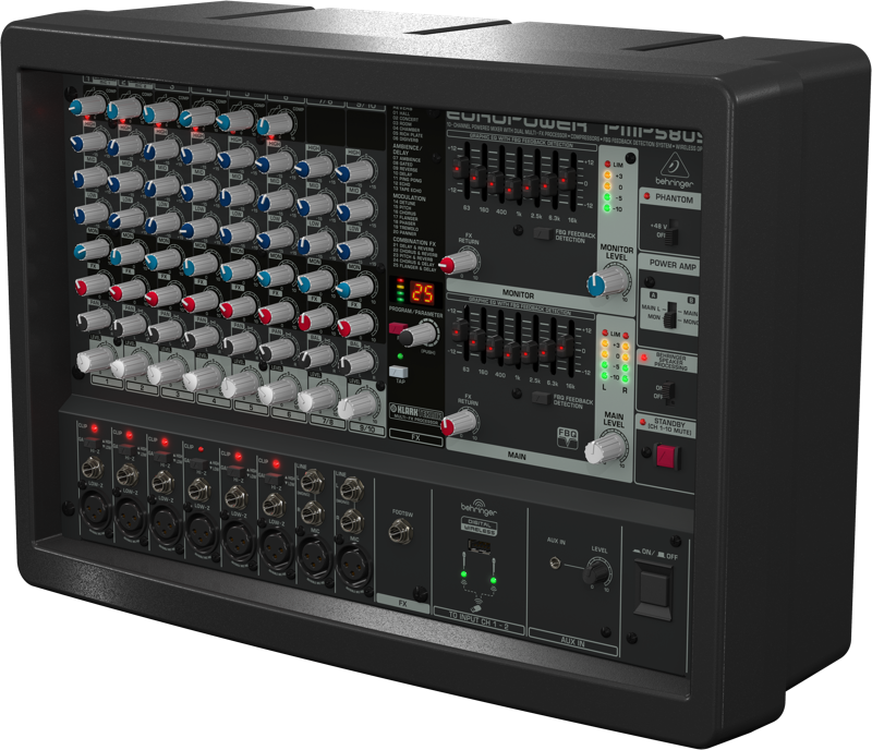 Нарешті, система FBQ - фірмова розробка Behringer - розв'язує проблему акустичного зворотного зв'язку, яка нерідко виникає в залах з не надто вдалою акустикою. FBQ детектує критичні частоти, що каскадно посилюються, а 7-смуговий стереофонічний еквалайзер допомагає зменшити їхню інтенсивність без роботи з кожним каналом окремо.
