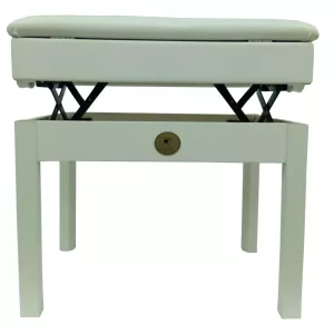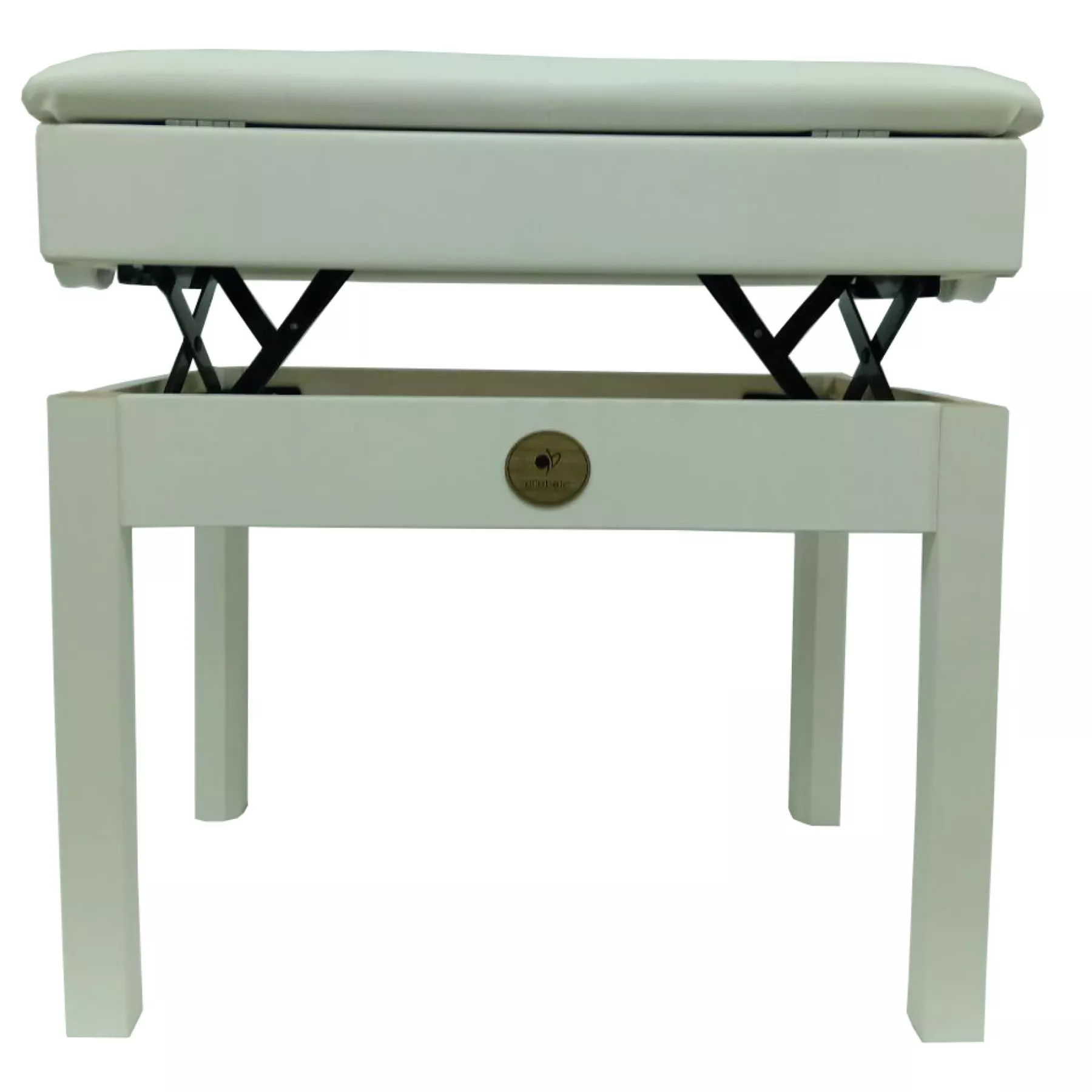 Alfabeto BOOK-BENCH – ідеальний вибір для клавішних інструментів, таких як фортепіано, рояль, орган або синтезатор. Завдяки спеціальному відділенню під сидінням, ви зможете зручно зберігати ноти та інші важливі речі. Для музикантів ця банкетка є надзвичайно комфортною завдяки можливості регулювання висоти за допомогою спеціальної ручки, що дозволяє налаштувати її під ваші індивідуальні потреби. Ніжки банкетки мають прямий дизайн і виготовлені з дерева, при цьому вони обладнані захисним покриттям для запобігання пошкодженню підлоги. Сидіння виготовлене з натуральної шкіри та наповнене поролоном товщиною 30 мм, що гарантує комфорт і підтримку під час гри. Металеві петлі додають стійкості і міцності конструкції.