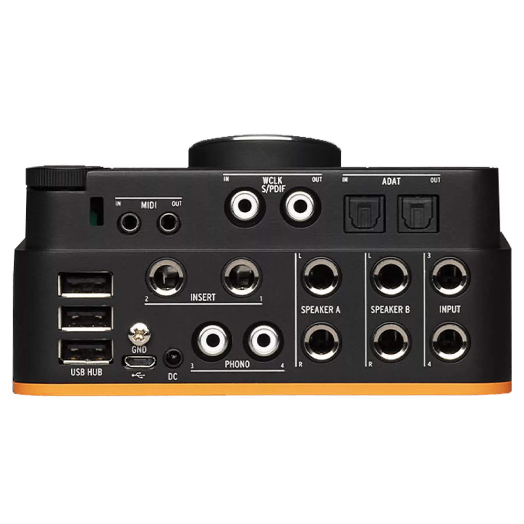 Вхідні роз'єми:x Mic/Instrument/Line (XLR / 1/4" TRS), 2x Phono/Line (RCA / 1/4" TRS), 2x inserts 1/4" TRS, MIDI, ADAT, S/PDIF, Word clock