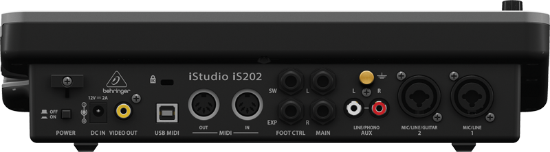 iStudio iS202 також включає два мікрофонні/лінійні входи з фантомним живленням (один з перемиканням для входів Hi-Z, таких, як електрогітари чи басові - немає необхідності в DI-боксах), тож можна використовувати конденсаторні мікрофони студійної якості для приголомшливих професійних результатів.