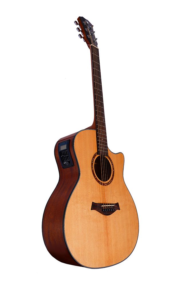 Серія SOLID AMS40 згрупована під категорію гітар форми Аудиторіум і є ідеальним інструментом для початківців та аматорів, які не хочуть витрачати надто багато грошей на інструмент, але шукають щось прекрасне. Верхня дека виготовлена з масиву ялини, обичайки та нижня дека - з червоного дерева. Нижній поріжок з ABS-пластика. Гриф з червоного дерева з палісандром, і з накладкою з палісандра. Гітара має сталеві струни та укомплектована чохлом. Все це - гарантує Вам роки стабільної роботи.