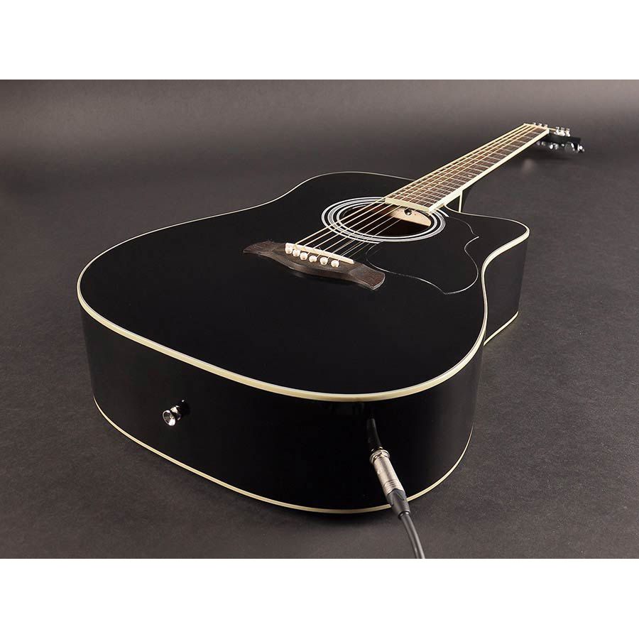 Електроакустична гітара, 6 струн. Форма деки дредноут. Активний еквалайзер, литі кілки. У наявності кольори: чорний, Red Sunburst.