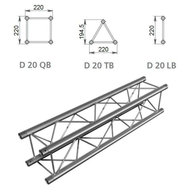 Декоративні квадратні ферми серії D-20 призначені для створення легких просторових конструкцій, підвісу світлових приладів і створення розбірних декорацій. Так само з них можна збирати легкі виставкові стенди.