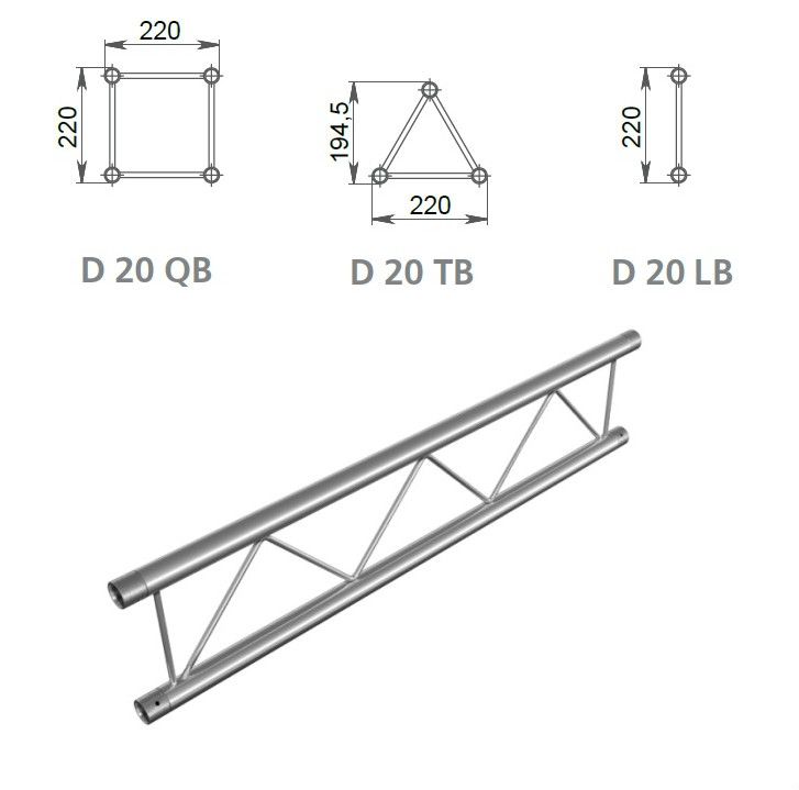 Декоративні плоскі ферми серії D-20 призначені для створення легких просторових конструкцій, підвісу світлових приладів і створення розбірних декорацій. Так само з них можна збирати легкі виставкові стенди.