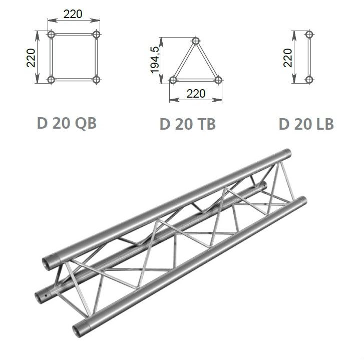 Декоративні трикутні ферми серії D-20 призначені для створення легких просторових конструкцій, підвісу світлових приладів і створення розбірних декорацій. Так само з них можна збирати легкі виставкові стенди.