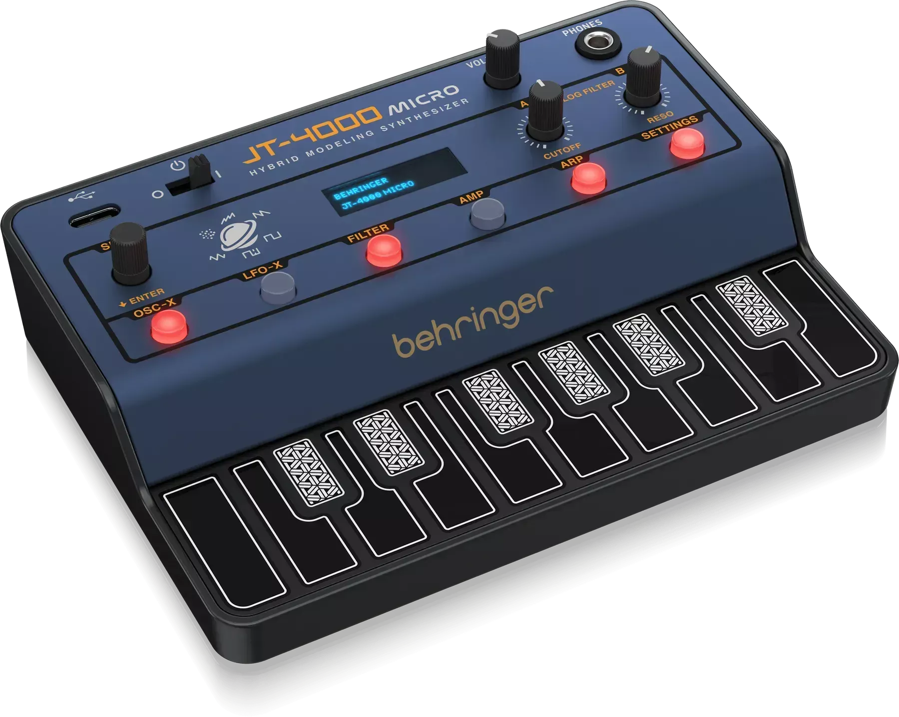 Behringer JT-4000 MICRO - портативний 4-голосий гібридний синтезатор стане вірним супутником музикантів, забезпечуючи високоякісний звук та багаті звукові можливості у зручному форматі.