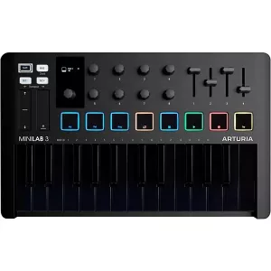 MiniLab 3 - це компактна MIDI-клавіатура та пед-контролер, який дозволяє користувачам створювати музику прямо з коробки. MiniLab 3 з творчим робочим процесом plug-and-play, універсальними елементами керування, що призначаються, 500 підібраними звуками з величезної бібліотеки Analog Lab і комплектом програмного забезпечення для творчості світового класу, покликана нарешті допомогти новачкам і професіоналам повністю поринути в музику. творчий потік, незалежно від їхнього стилю.