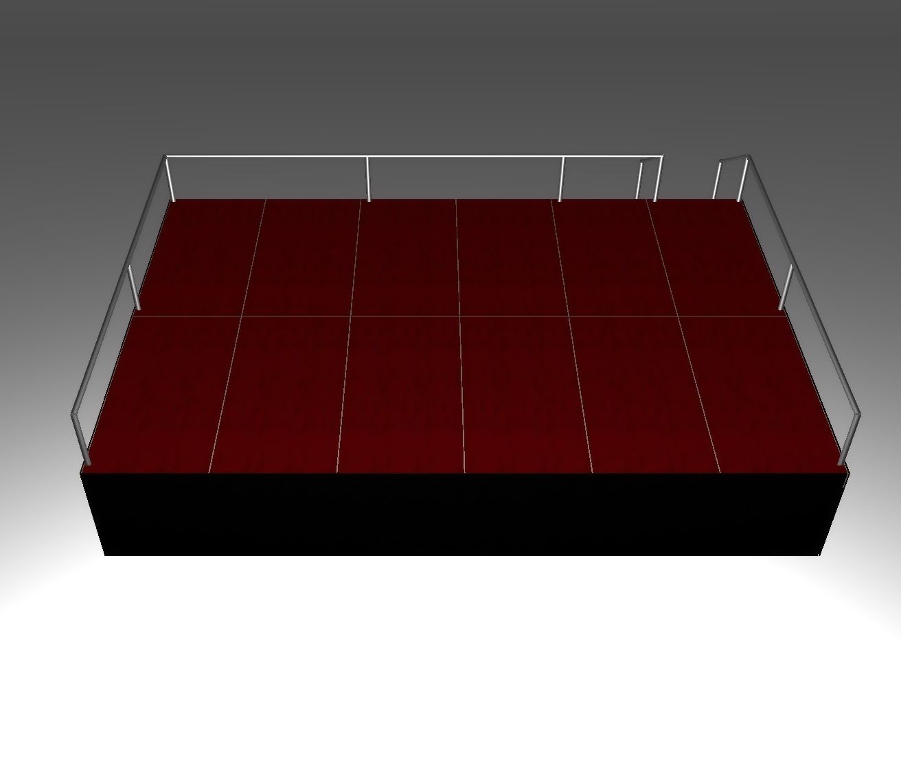 У разі купівлі подіуму з ніжками заввишки 0,75 і 1м. ми рекомендуємо придбати перила, що огороджують весь периметр подіуму. Так само ви можете додатково придбати перила для сходинок. Це розумно при висоті подіуму від 75см.