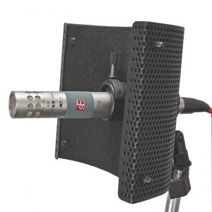 Малий інструментальний акустичний екран для мікрофонів з малою мембраною. Матеріал: Перфорований алюміній з трьома шарами поліефірного фібрового картону. Поворотний затискач для кріплення на будь-якій мікрофонній або барабанній стійці.