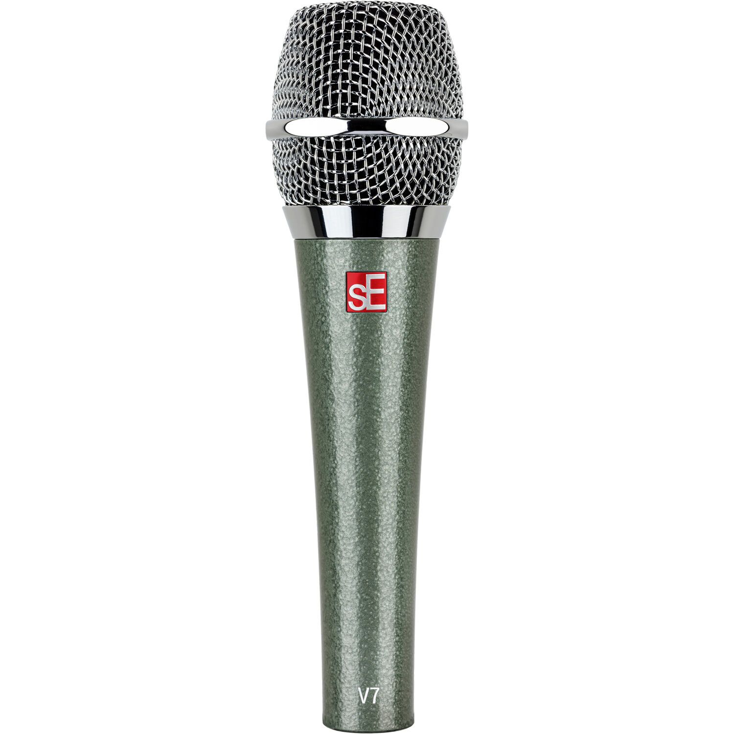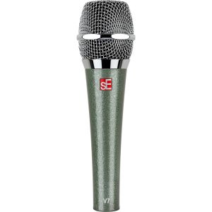 sE Electronics V7 VE Vintage Edition - динамічний вокальний мікрофон, вінтажна версія, суперкардіоїда спрямованість, 40-19000 Гц, чутливість 2,0 мВ/ Па (-54 дБВ), підключення 3-контактний XLR, кріплення стійки, захист від вітру і корпус включені.