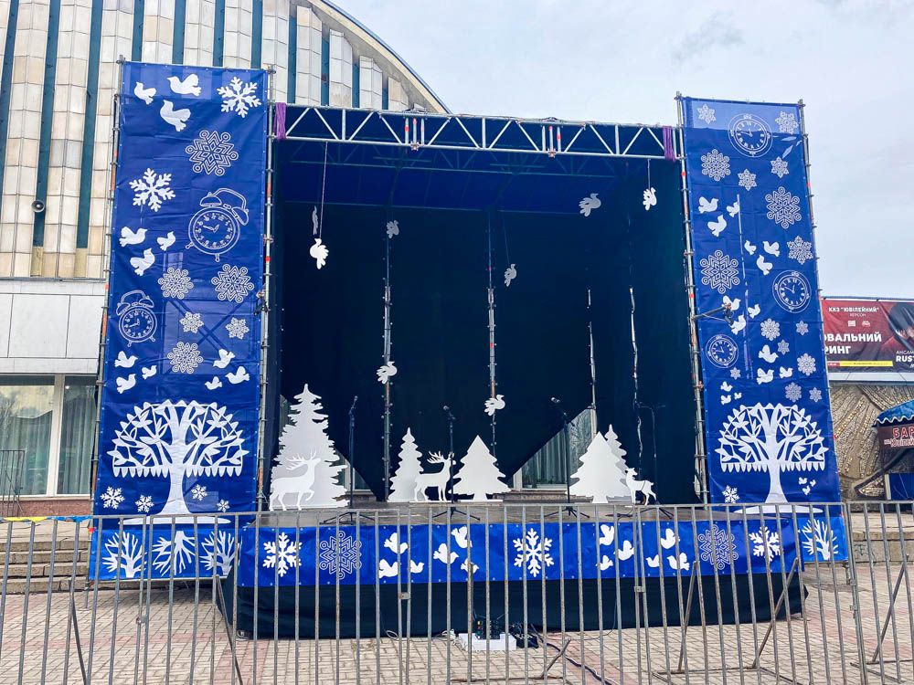 - Каркас задника сцени дає змогу розмістити на ньому ЛЕД екран.