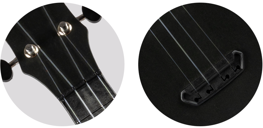 Додатково: конструкція з посиленого полікарбонатом пластику, закруглена задня дека, флюорокарбонові струни, кнопка для ременя, нульовий лад, тонка дека з гратчастими розпірками, прорізний бридж, передні та бічні маркери ладів, відкриті колки з редуктором та сумка для інструментів.