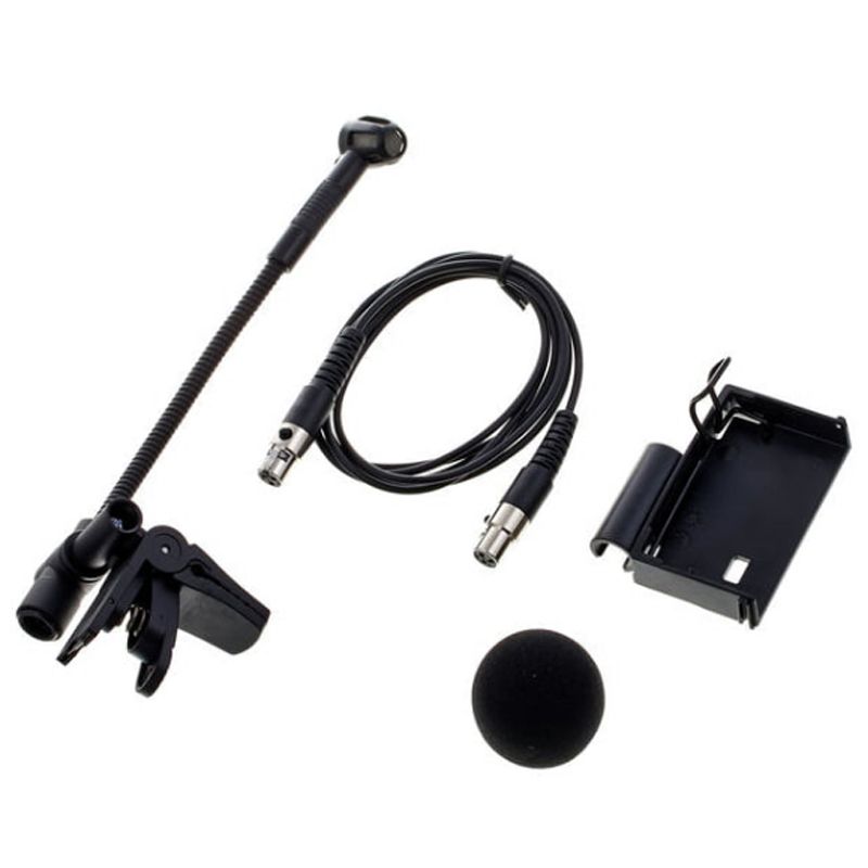 Комплект предназначен для работы в составе радиосистем, т. к. в его состав входит специальный адаптер, позволяющий крепить микрофон непосредственно на корпус передатчика.
