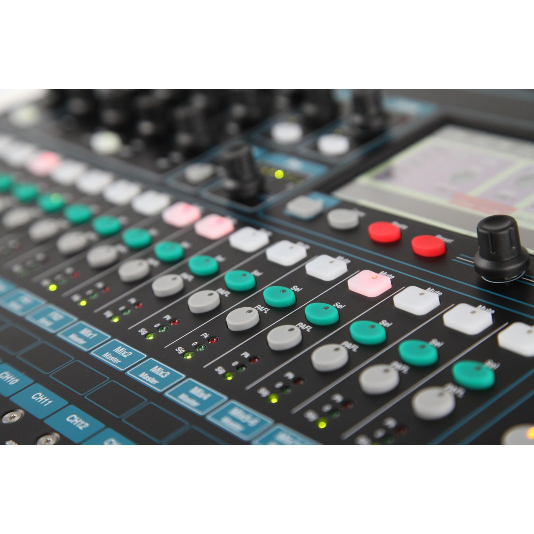 Все ключевые инструменты управления представлены в наглядном блоке SuperStrip, где на каждую функцию выделена одна физическая ручка управления. SuperStrip дополняется сенсорным экраном для более интуитивного доступа к параметрам без необходимости перемещения по сложной структуре меню. Обработка для МОНО и СТЕРЕО входов включает чувствительность, полярность сигнала, HPF фильтр, гейт, разрыв, 4 полосный эквалайзер, компрессор и delay. главный СТЕРЕО микс LR и моно шина имеют разрыв, 1/3 октавный эквалайзер, компрессор и delay. Стерео шины имеют разрыв, 4-полосный параметрический эквалайзер, компрессор, delay и регулятор панорамы.