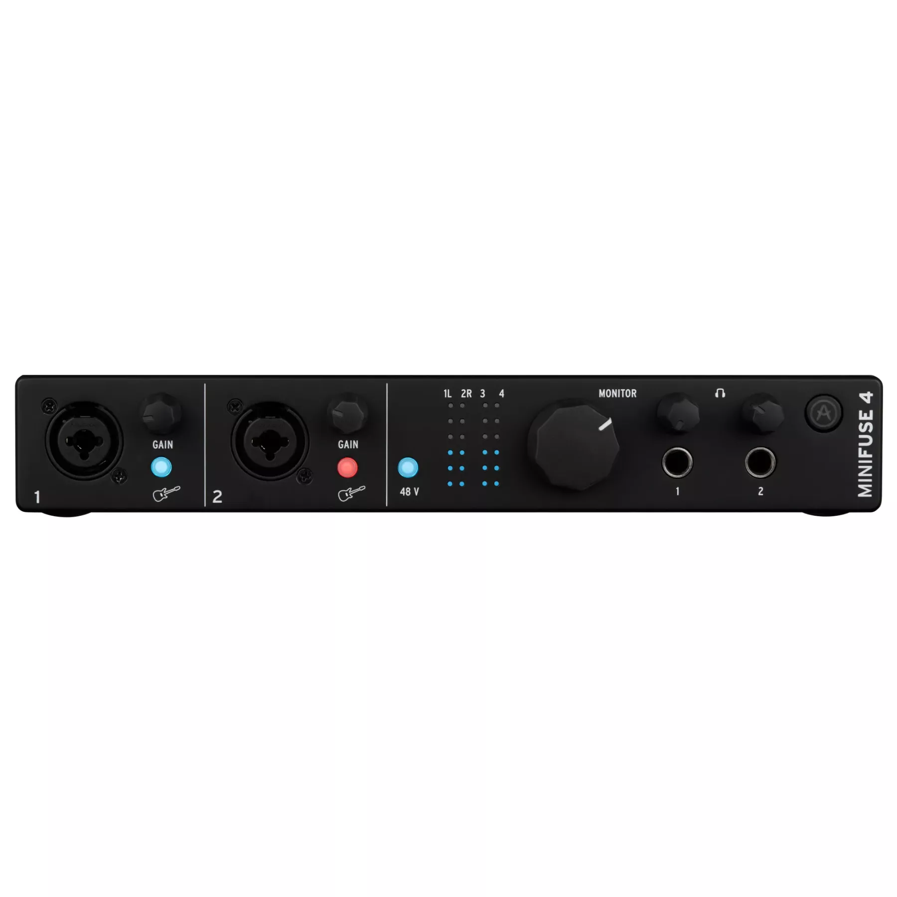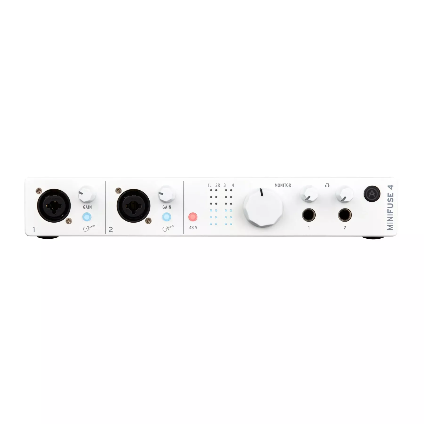 MiniFuse 4 идеально подходит для Вашей установки благодаря простому набору входов и выходов. Его единственный комбинированный вход позволяет легко подключать кабели XLR или джек 1/4 дюйма. Подключайтесь к компьютеру с быстрой и компактной совместимостью USB-C. Наконец, подключите USB-устройства, такие как MIDI-клавиатура, к дополнительному разъему USB-концентратора.
