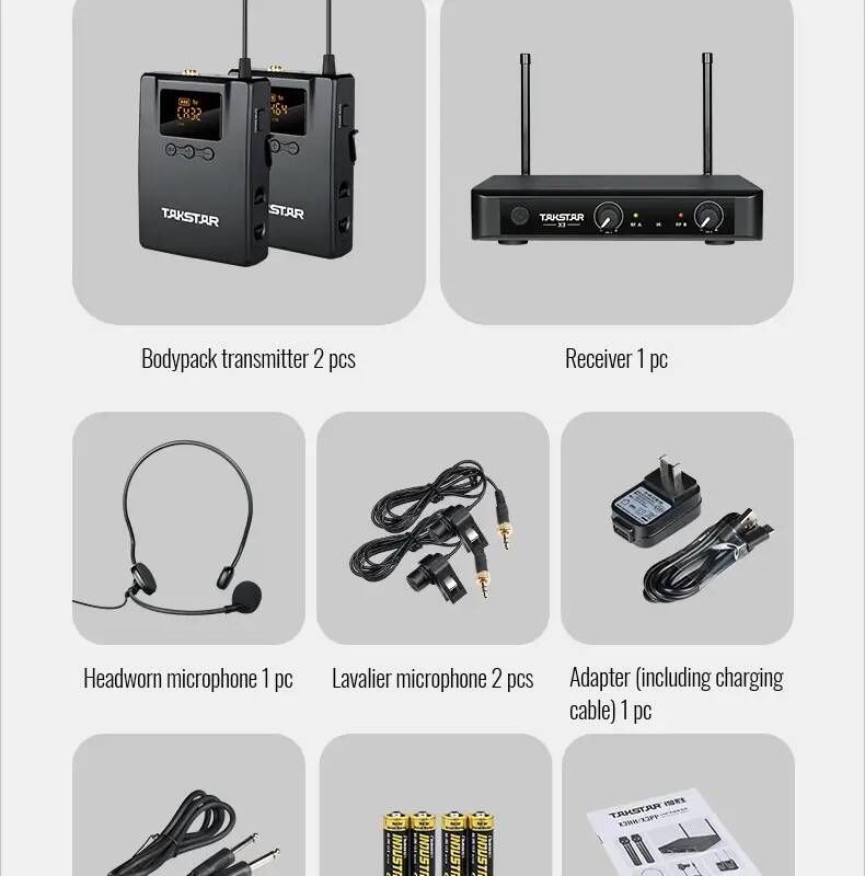 петличный микрофон-2шт.,главный микрофон-1шт.