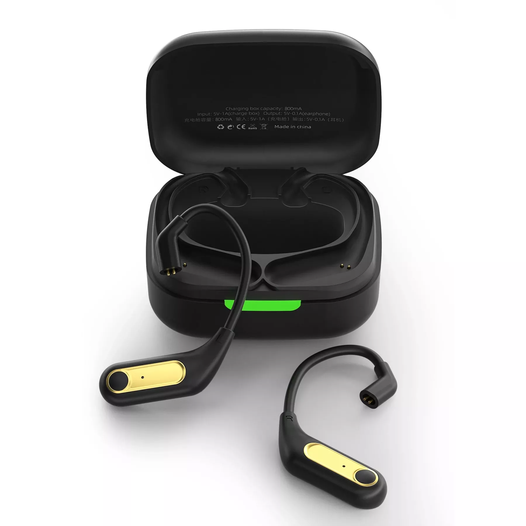 Зарядный чехол оснащен аккумулятором емкостью 800 мАч, который позволяет заряжать заушные крючки несколько раз. Он также имеет порт USB-C, поддерживающий быструю зарядку, и светодиодный индикатор, показывающий уровень заряда батареи футляра и заушных крючков.