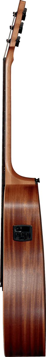 Целостная верхняя дека из массива ели - эта ель, как правило растет в Канаде и на Аляске, предлагает широкий диапазон средних и низких частот. Звук плотный и сфокусированный, особенно хорошо подходит для игры аккордов или для ритмического пальцевого исполнения. Нижняя дека и обечайка из дерева Сапеле - которая по цвету очень изменчива - от светло-розового до красновато-коричневого, блестящая, очень декоративная. Некоторые участки распила имеют слабо контрастный полосатый рисунок. Древесина хорошо поддается механической обработке и полировке. При нанесении лака отдельные поры древесины могут выглядеть как едва заметны на общем фоне более светлые точки.
