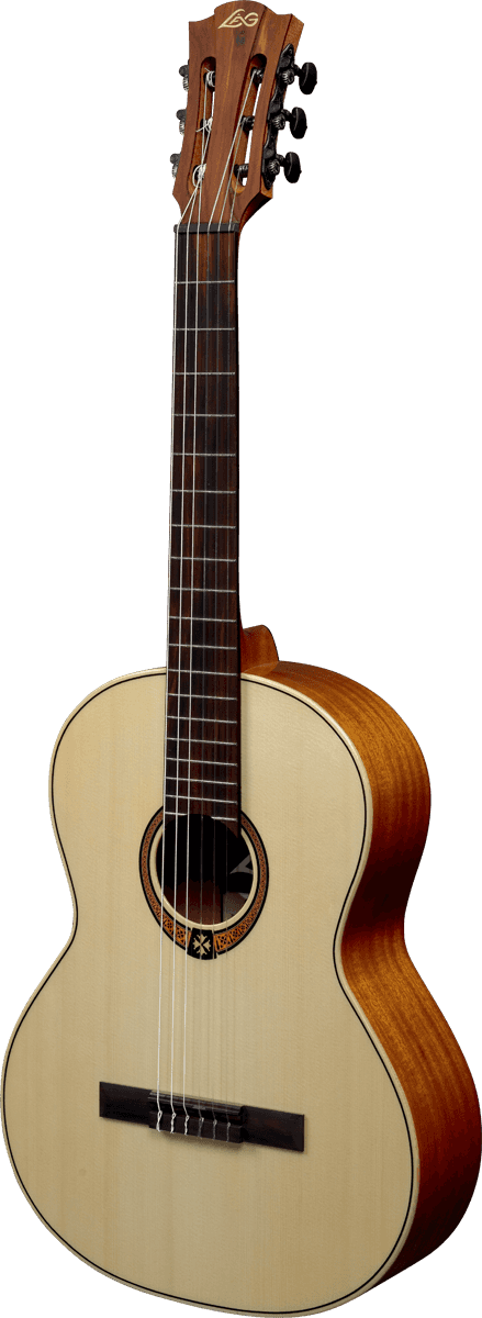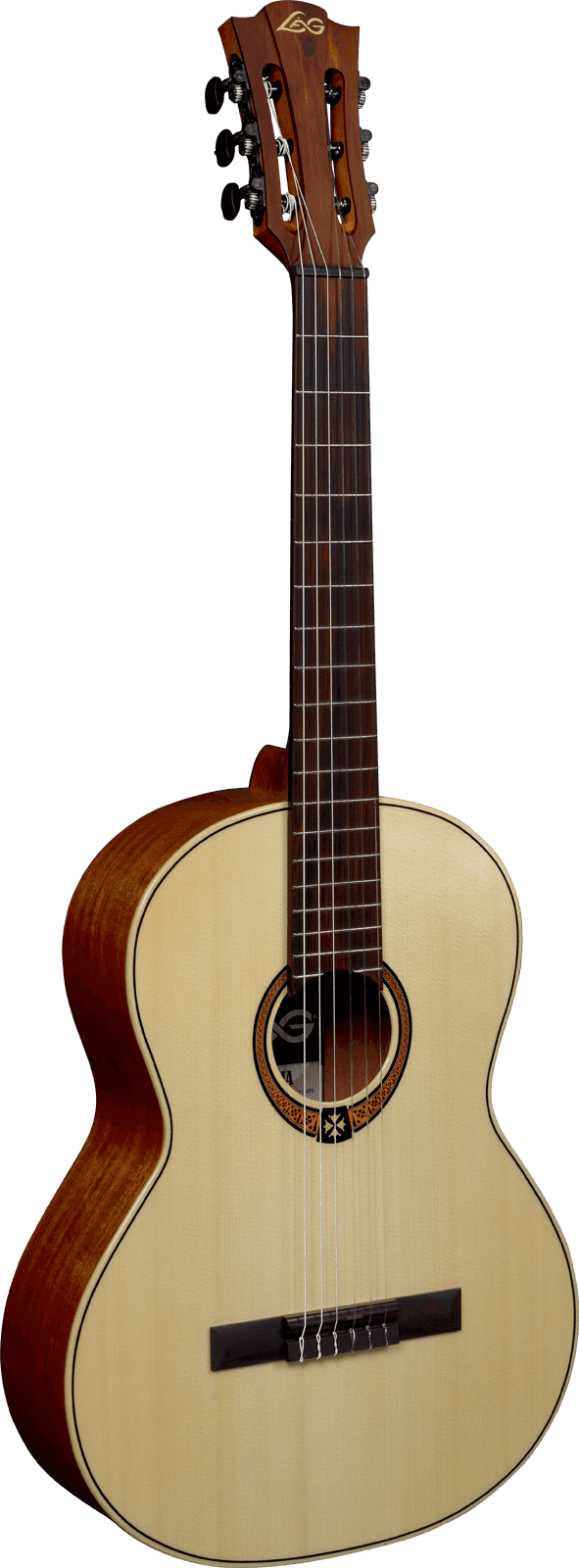Гитара классическая, серии Occitania. Размер 4/4. Верхняя дека из массива ели придает звуку глубину и объем, а нижняя дека и обечайки из дерева Хайя, с глянцевым покрытием, придает изящество.