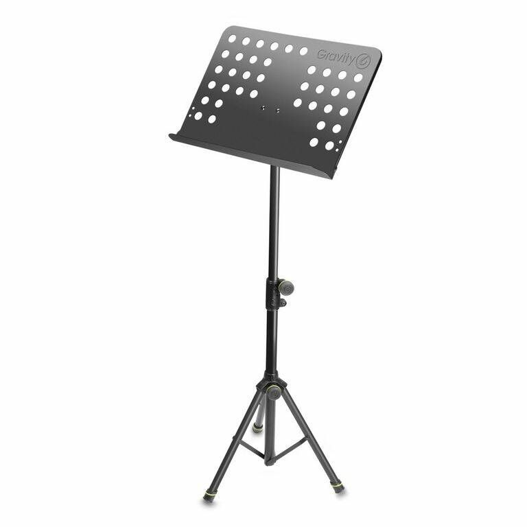 Gravity NS 411 - оркестровый пюпитр в классической форме с треножным основанием. Надежные механизмы регулировки высоты и угла наклона с фиксирующим винтом Массивная алюминиевая основа и прочная муфта Легкий вес NS 411 выполнен в классической форме с треножным алюминиевым устойчивым основанием. Стол пюпитра перфорированный и выполнен из стали. Особое внимание при разработке было уделено основанию, соединительной муфте и механизму регулировки высоты. Эргономичные и надежные ручки Gravity с регулировочными винтами изготовлены из пластика АБС с нескользящим термопластичным покрытием Soft-touch. Прочная конструкция пюпитра позволяет использовать его почти при любых условиях.