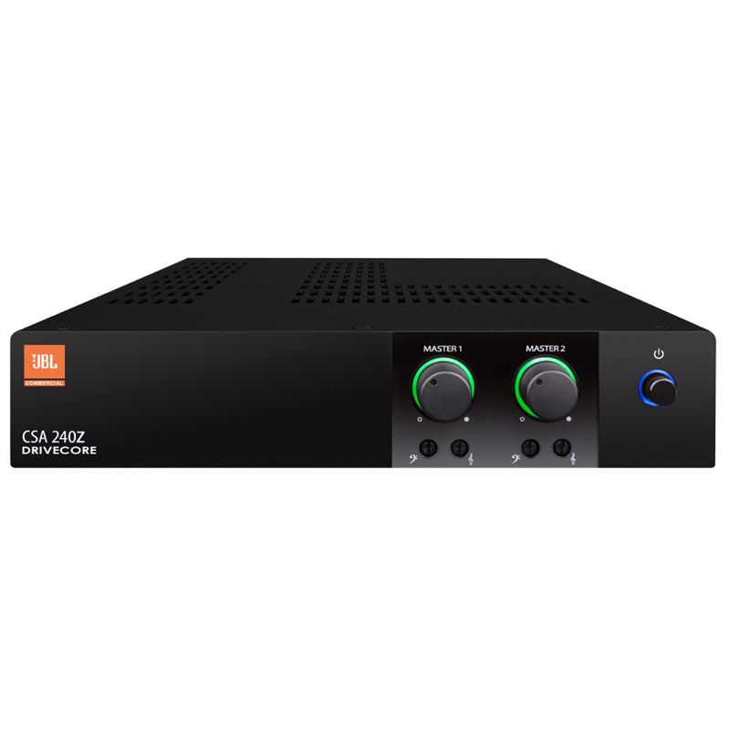 JBL CSA240Z усилитель, 2 канала, 40 Ватт, низкоомный режим и трансформатор 70/100 В. Простые в управлении усилители серии CS созданы на основе технологии DriveCore. Это позволило заменить 500 элементов в усилителе одним маленьким чипом, уменьшив количество деталей и повысив надежность при сохранении превосходной производительности. Встроенная поддержка режимов подключения 70 и 100 В, универсальный адаптер, возможность подключения настенной панели управления JBL CSR-V (опция)