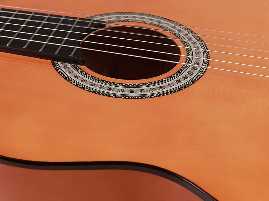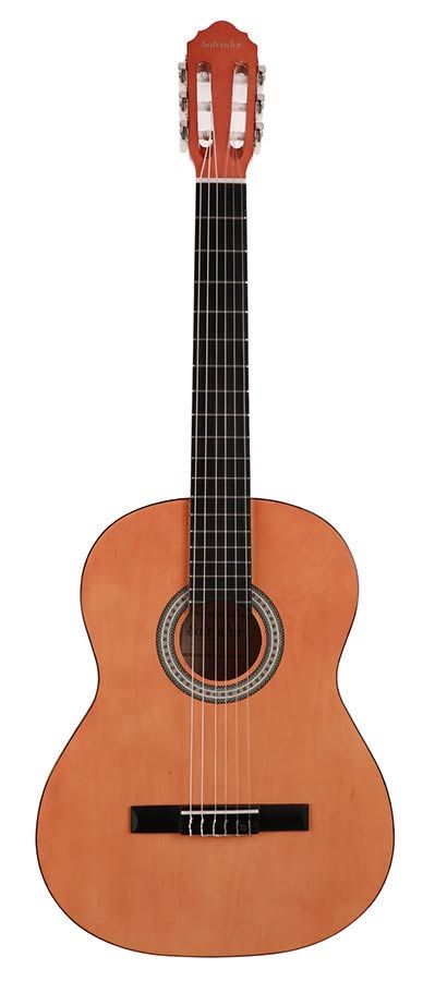 Очень доступная и полная гитара 4/4 с естественной отделкой. Имеет серебряно-никелевое лепное украшение, стабильные качественные тюнеры и анкерный стержень. Это делает гитару очень подходящей как для начинающего, так и для продвинутого гитариста.