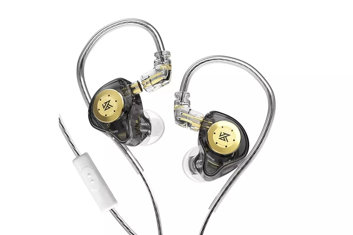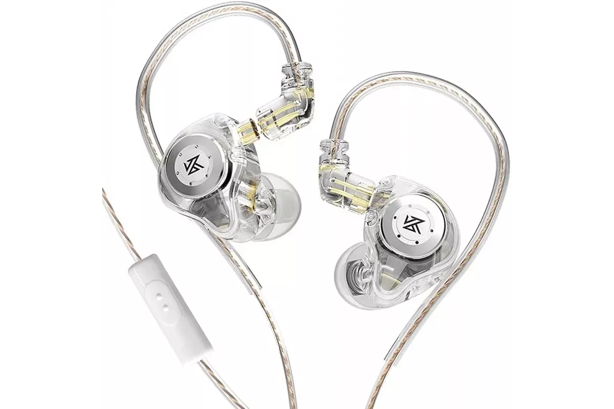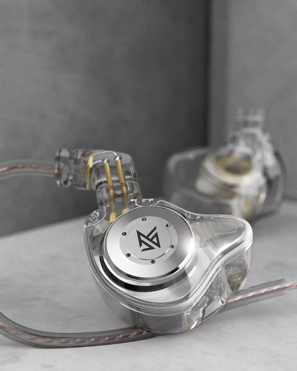 Внутренняя часть корпуса KZ EDX PRO MIC выполнена из полупрозрачного пластика, через который можно увидеть три динамика. На звуководе есть углубление для лучшего сцепления с амбушюрами и сетка для защиты от попадания пыли и грязи. На внешней стороне наушника расположена панель с небольшими отверстиями, которые сделаны для отсутствия ощущения давления. Корпуса наушников анатомической формы хорошо изолируют от внешнего шума. Удобная посадка и заушное крепление позволяет пользоваться KZ EDX PRO MIC во время пробежек и занятий спортом.