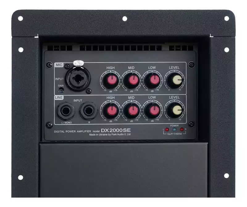 DX2000SE PFC - профессиональный встраиваемый двухканальный усилитель мощности (модуль) для стереокомплекта (активная + пассивная акустическая система) класса D с двумя линейными 1/4" JACK и микрофонным Combo XLR-1/4" JACK входами и опцией регулировки тембра (НЧ, ВЧ, СЧ).
