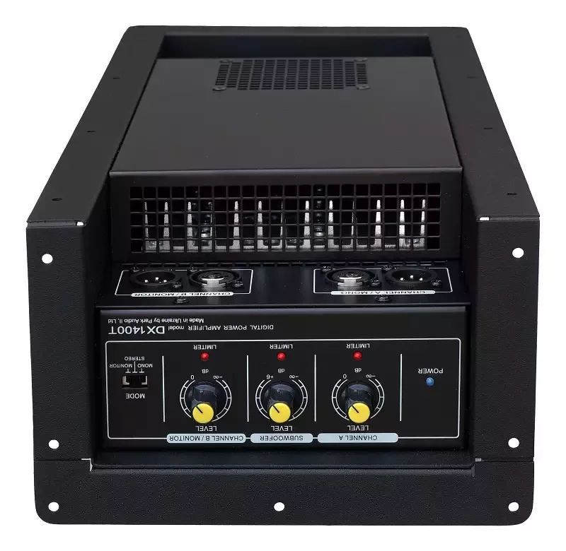 DX1400T - профессиональный, встроенный трехканальный комбинированный усилитель (модуль) класса D, предназначенный для конфигурации: сабвуфер+два сателлита. Все элементы модуля смонтированы на Г-образной конструкции из двух несущих панелей и закрыты с тыльной стороны кожухом, который выполняет защитные функции и обеспечивает углубленную посадку модуля в корпус акустической системы.