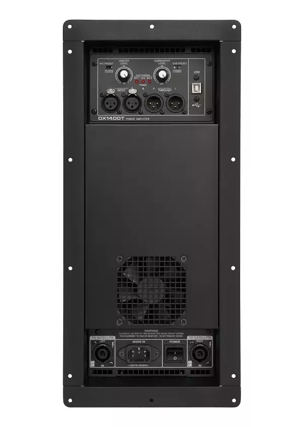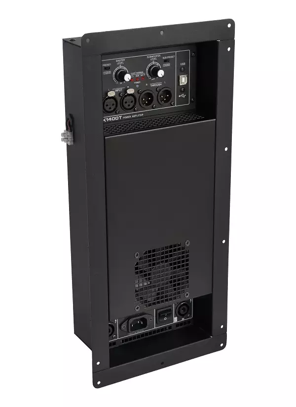DX1400T DSP - профессиональный, встроенный трехканальный комбинированный усилитель (модуль) класса D со встроенным DSP-процессором, предназначенный для конфигурации: сабвуфер+два сателлита. Все элементы модуля смонтированы на одной несущей панели и размещены в кожухе, выполняющем защитные функции и обеспечивающем углубленную посадку усилителя в корпус акустической системы.