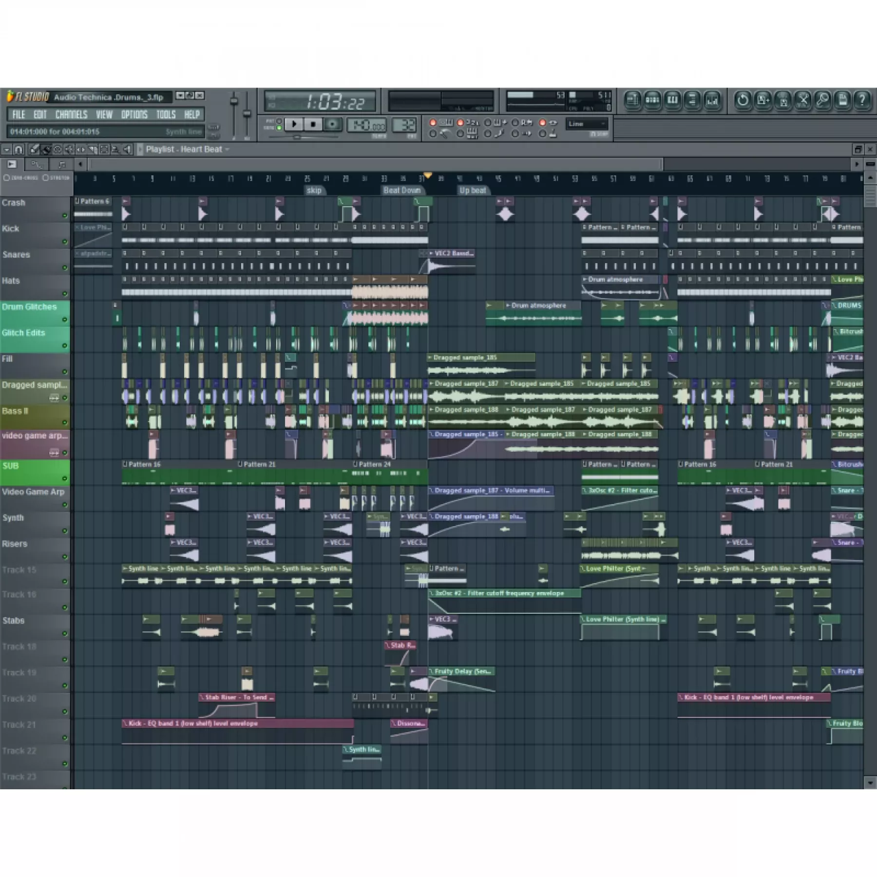 Виртуальное создание любого звука: FL Studio содержит более 30 программных синтезаторов, создающих звуки акустических и синтетических басов, электрогитар, мультисемплерных инструментов, в том числе пиано и струнных, большой выбор шумов и звуков ударных (с поддержкой Rex 1&2).
