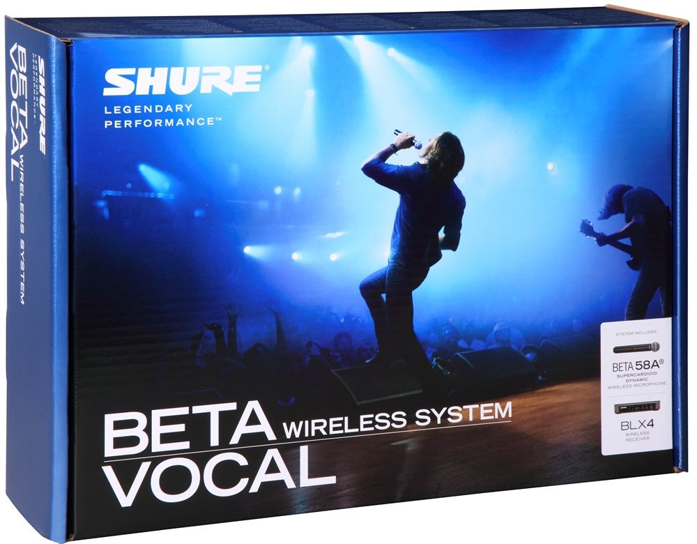 - Комплект: одноканальный приемник BLX4, ручной передатчик BLX2 / B58 (с головкой микрофона Beta58), блок питания, 2 AA батарейки, микрофонный держатель, прочный мягкий чехол на молнии, инструкция.
