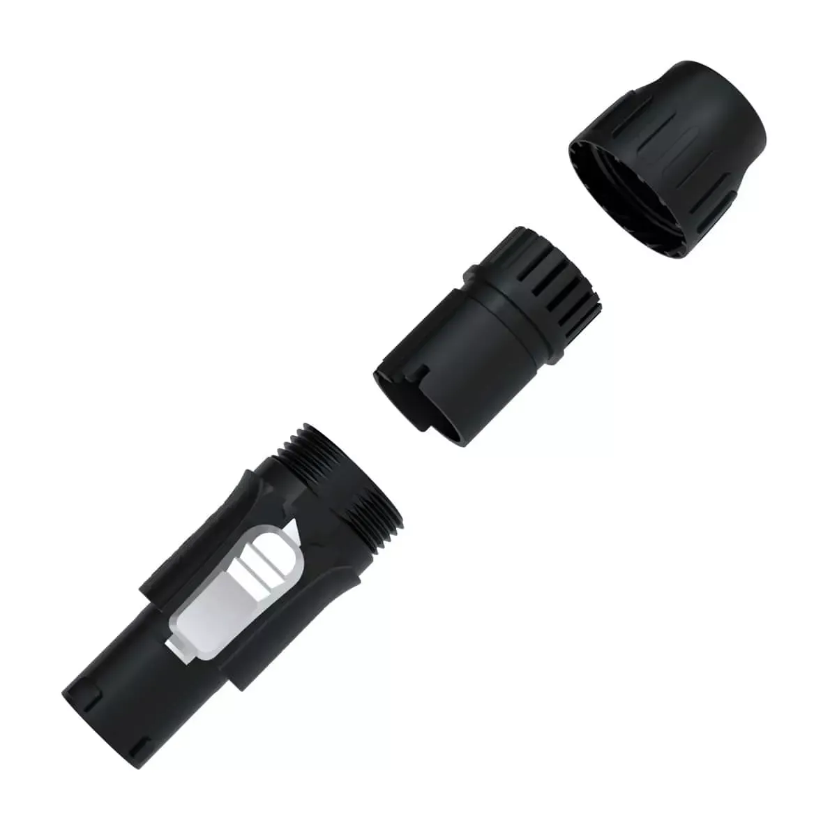 Особенности продукта Замыкаемый трехжильный разъем кабеля питания с контактами для линии, нейтрали и предварительно адаптированного безопасного заземления Используется для электрического подключения на открытом воздухе со степенью защиты IP65 Подходит к штекеру SAC3MX или розетке SAC3MPX/SAC3MPX-LY Быстрая и простая система замыкания с прочным замком, который не отпадает Высокая мощность тока по оценке 16A/250V AC VDE и 20A/300V AC UL Сертификация UL498 и UL50E № E356932 Сертификация VDE № 40044166" "Электрические характеристики: Количество контактов: 2 + PE (защитное заземление) Номинальный ток: 16A (VDE) / 20A (UL) Номинальное напряжение: 250 В переменного тока (VDE) / 300 В переменного тока (UL) Контактное сопротивление: ≤ 5 мОм Диэлектрическая прочность: 4000 В постоянного тока (1600 В/мин переменного тока UL) Сопротивление изоляции: > 1000 МОм Механические свойства: Срок службы: более 1000 циклов сопряжения. Совместимость с размерами кабелей: подходит для кабелей с поперечным сечением 2,5 мм² и наружным диаметром (OD) от 7 до 11 мм. Тип клеммы: разработан с винтовыми клеммами для безопасного соединения. Характеристики материалов: Корпус: изготовлен из прочного материала PA. Контакты: изготовлены из медного сплава с посеребренным покрытием для оптимальной проводимости. Рейтинг огнестойкости: UL94-V0, что обеспечивает безопасность от пожара. Диапазон температур: Эффективно работает от -30°C до +80°C