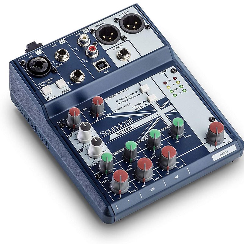 SOUNDCRAFT NOTEPAD-5 представляет собой аналоговый микшер, имеющий один моноканал, один моно/стереоканал и один стереоканал, аудиоинтерфейс для шины USB. Все модели включают обработку сигналов HARMAN и возможность подключения USB-устройств ввода-вывода. Новые технологии SOUNDCRAFT NOTEPAD, оптимизированные для решения современных задач аудиозаписи, обеспечивают исключительное качество и производительность для подкастеров, вокалистов и профессионалов в области аудио, которым требуются небольшие микширующие решения.