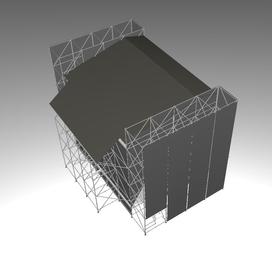 Внутренняя драпировка сцены защищает людей и оборудование от непогоды и обеспечивает нужный фон для работы световых приборов.