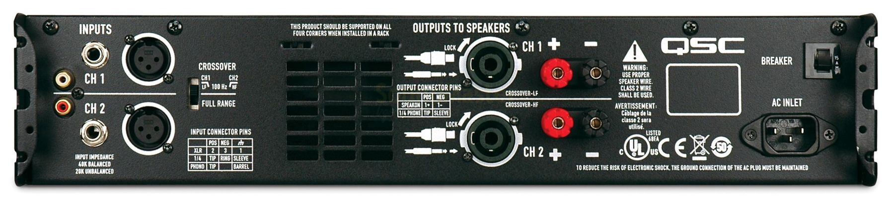 Усилитель мощности (2U), 2 х 350Вт 8 Ом, 2 х 500 Вт - 4 Ом, класс В, входы - RCA, TRS, XLR, выходы - Speakon&Jack, клеммы, встроенный кроссовер 100Гц, 11 кг.