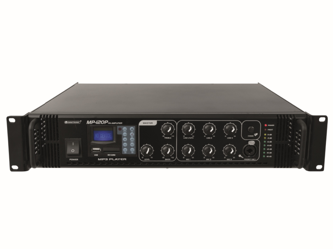 MP-120P - усилитель, 70 / 100В, 4-16 Ом, 120Вт, MP3 / SD / USB. Этот микшер-усилитель позволяет оптимально регулировать громкость динамиков PA.