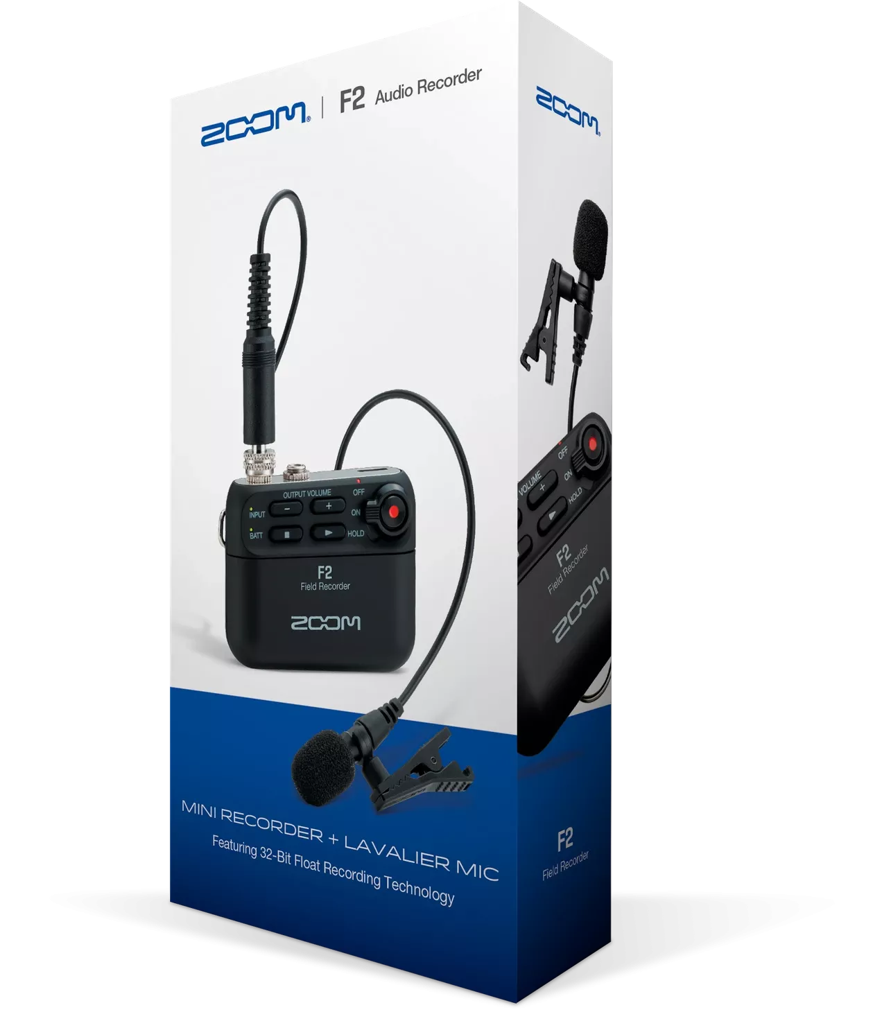 Zoom F2 – сверхкомпактный рекордер для полевой записи. Устройство подходит для различных производителей контента — от музыкантов до репортеров. Благодаря петличному микрофону LMF-2, входящему в комплект, этот рекордер способен записывать аудио в разрешении 32 бит / 44,1 кГц.