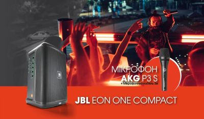 Купіть активну акустичну систему JBL EON ONE COMPACT та отримайте мікрофон AKG P3S з кабелем довжиною 3 м у комплекті за 1 гривню.