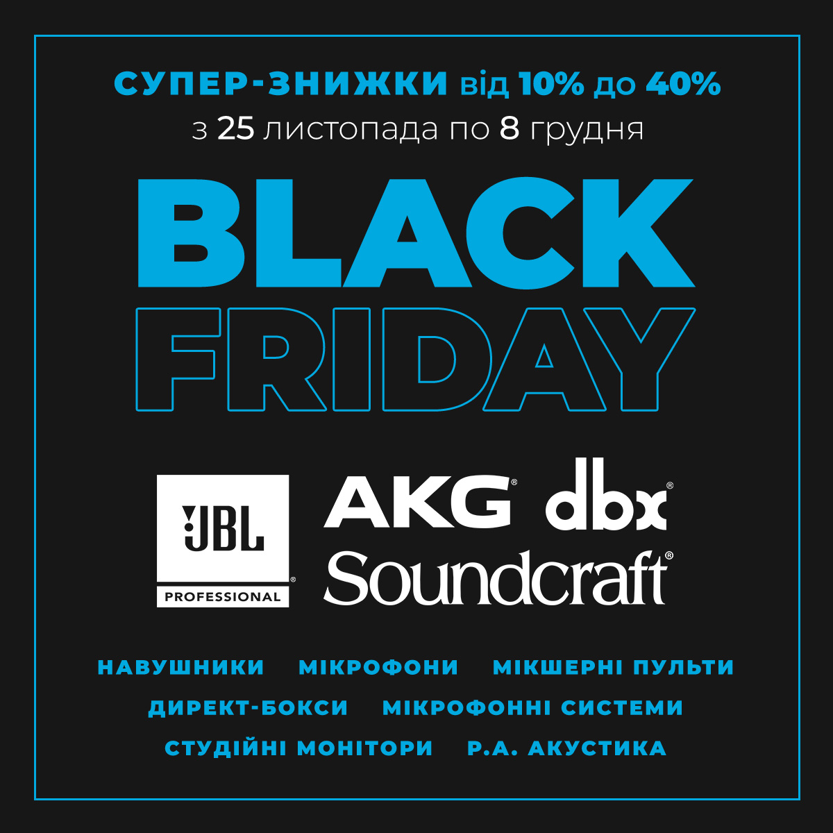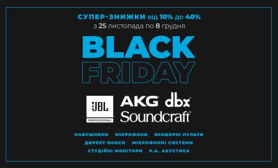 Чорна п'ятниця. Знижки до 40% на продукцію JBL, dbx, AKG, Soundcraft