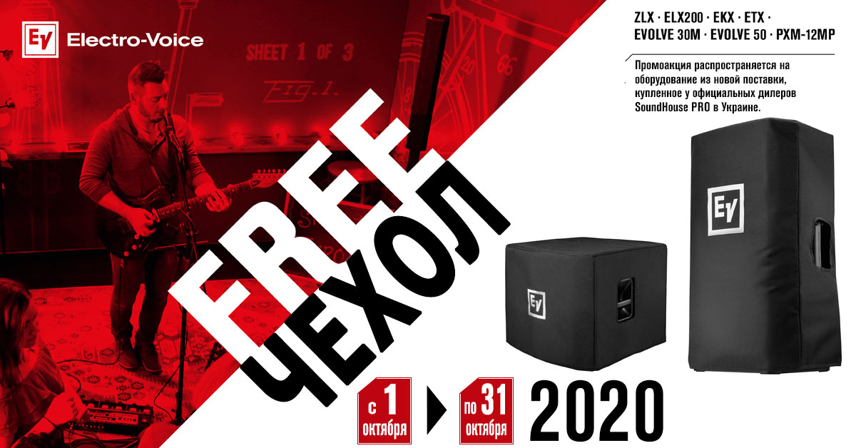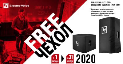 з 1 до 31 жовтня 2020 року замов у нас на сайті будь-яку акустичну систему серії ZLX, ELX200, EKX, ETX, EVOLVE 30M, EVOLVE 50 і Electro-Voice PXM-12MP та отримай безкоштовний захисний чохол на кожну з них!