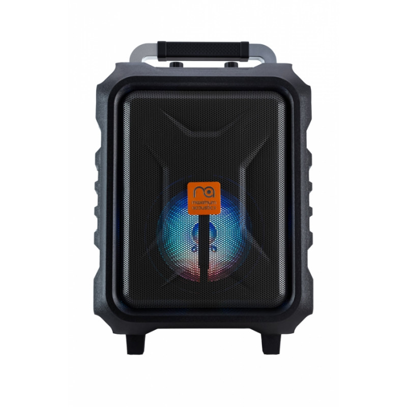 Maximum Acoustics MobiCUBE.60 - це мобільна двоканальна акустична система зі значним мультимедійним функціоналом. Музичної потужності в 30 Вт. RMS вам вистачить для невеликої вечірки. Інтегроване світлодіодне підсвічування у фронтальній частині доповнить її роботу світловими ефектами. Легкий і міцний корпус із сучасного пластику має вбудовану акумуляторну батарею, ємністю 4,5 Амп/год. Вона дасть можливість використовувати пристрій на дачі або в подорожі. Ящик цього акустичного кабінету нагадує традиційну валізу на коліщатках з висувною ручкою.