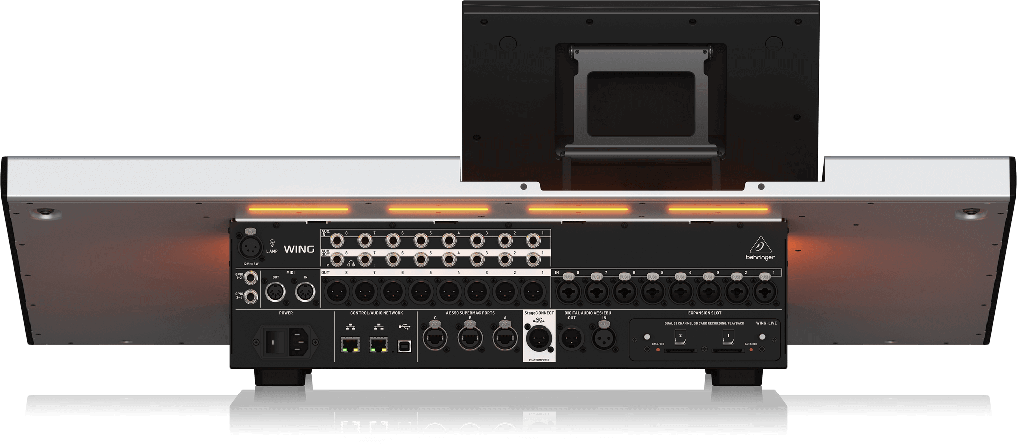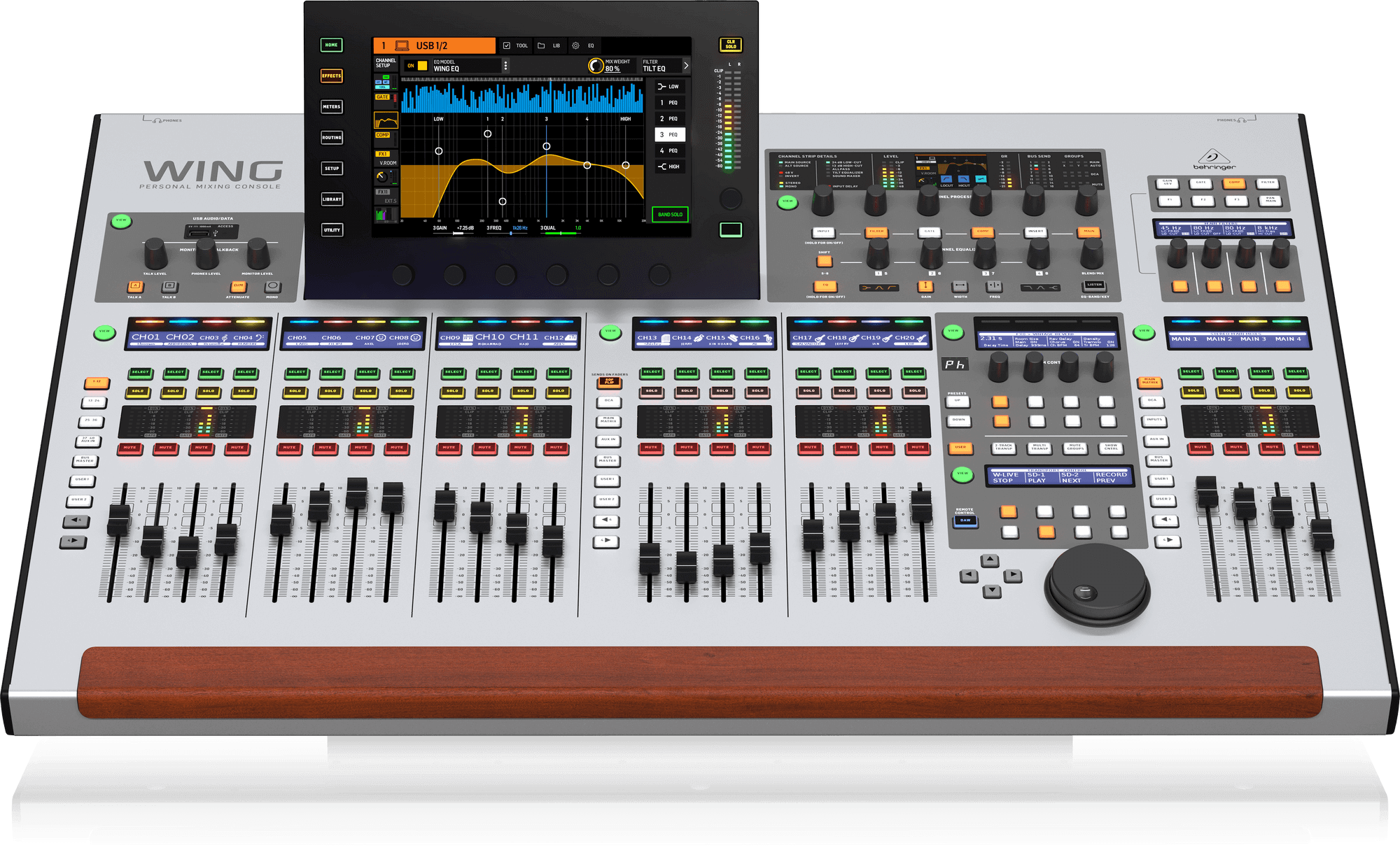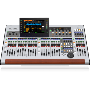 Цифрова мікшерна консоль BEHRINGER WING. Ця модель здобула популярність серед аудіоінженерів завдяки широким можливостям: автоматичне розпізнавання під'єднаних пристроїв, розширена маршрутизація каналів і підтримка до 374 входів і виходів. Її потужні DSP-ефекти дають змогу обробляти звук у реальному часі, що робить цей цифровий мікшер ідеальним для студійних умов і концертних майданчиків.