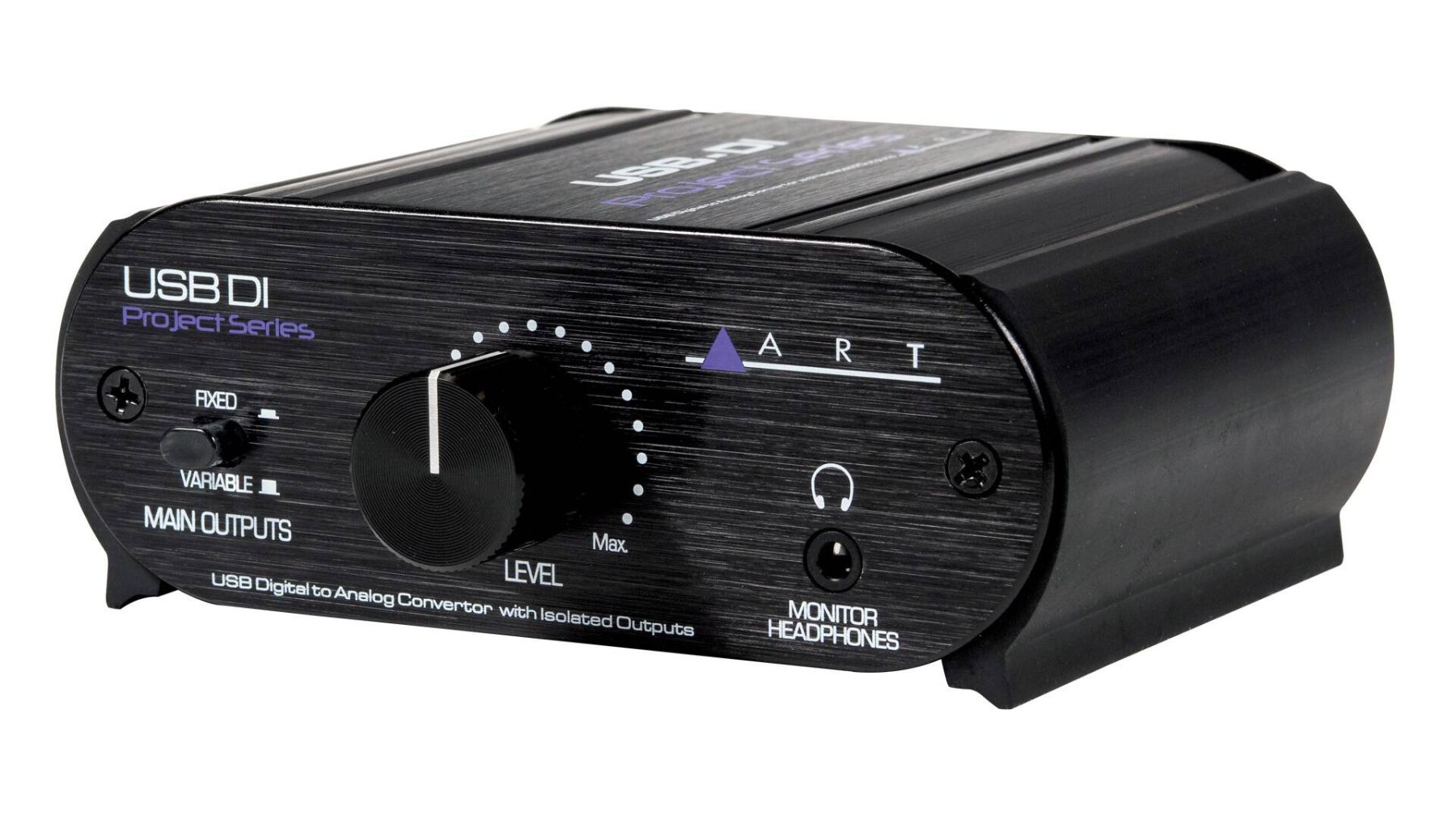 Велика ручка на передній панелі USBDI дає змогу швидко і точно контролювати рівень вихідного сигналу, а окремий вихід на навушники дає змогу користувачеві контролювати систему. Перемикач Main Outputs на передній панелі дає змогу користувачеві утримувати ізольовані виходи на фіксованому рівні, одночасно контролюючи рівень виходу на навушники.