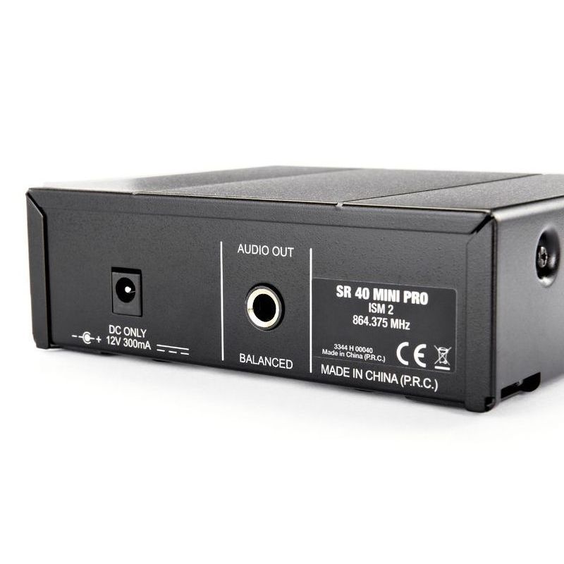 Бездротовий стаціонарний приймач SR40 Mini забезпечує кристально чисту якість звуку в потужних виступах. Він має три світлодіодні індикатори стану, що вказують на робочий статус пристрою, рівень вхідного сигналу та аудіо обмеження. Ресивер має потенціометр регулювання гучності та безшумний вимикач для захисту під'єднаних динаміків.